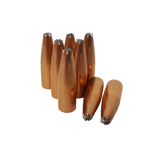 Our most aggressive hunting bullet—specially designed with a star-cut serrated jacket and lead core beneath the tip for violent, rapid expansion. Built for maximum transfer, typically in Flat Base form but also offered in RBT on request