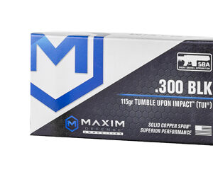 Adisc-125Maxim Defense Industries SBA Short Barrel Ammunition 300 Blackout 115 Grain Solid Copper Bullet TUI (Tumble Upon Impact) Design 20 Round Box MXM-49004