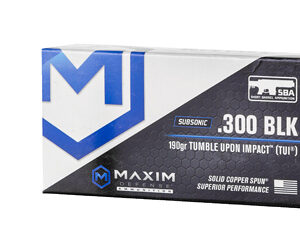 Adisc-125Maxim Defense Industries SBA Short Barrel Ammunition 300 Blackout 190 Grain Solid Copper Bullet TUI (Tumble Upon Impact) Design 20 Round Box Subsonic MXM-49005