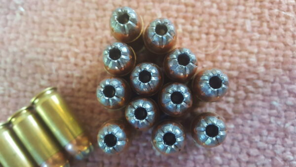 Personal defense ammunition loaded with Patriot serrated hollow point bullets.