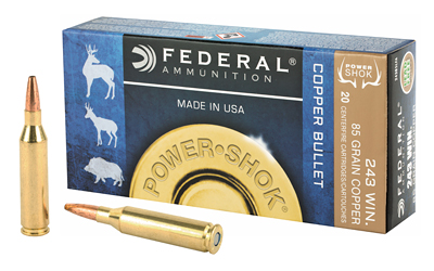 Federal PowerShok 243 Win 85 Grain Copper Lead Free 20 Round Box California Certified Nonlead Ammunition 24385LFA