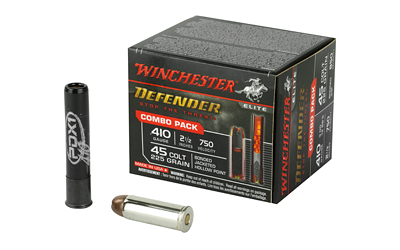 By combining the short-range capabilities of the 410 with the time proven stopping power of the 45 Colt, the Winchester combo pack delivers the innovative technology needed to stop threats with two state of the art personal defense loads in one convenient box.